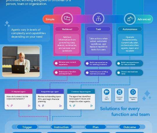 Repetitive tasks consume valuable time. AI agents change that. 🤖 Check out this infographic for an at-a-glance of variations in agent capabilities based on type and the different ways agents enhance productivity across an organization. @Microsoft 365